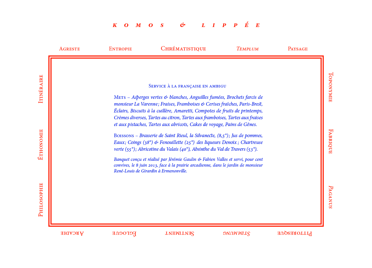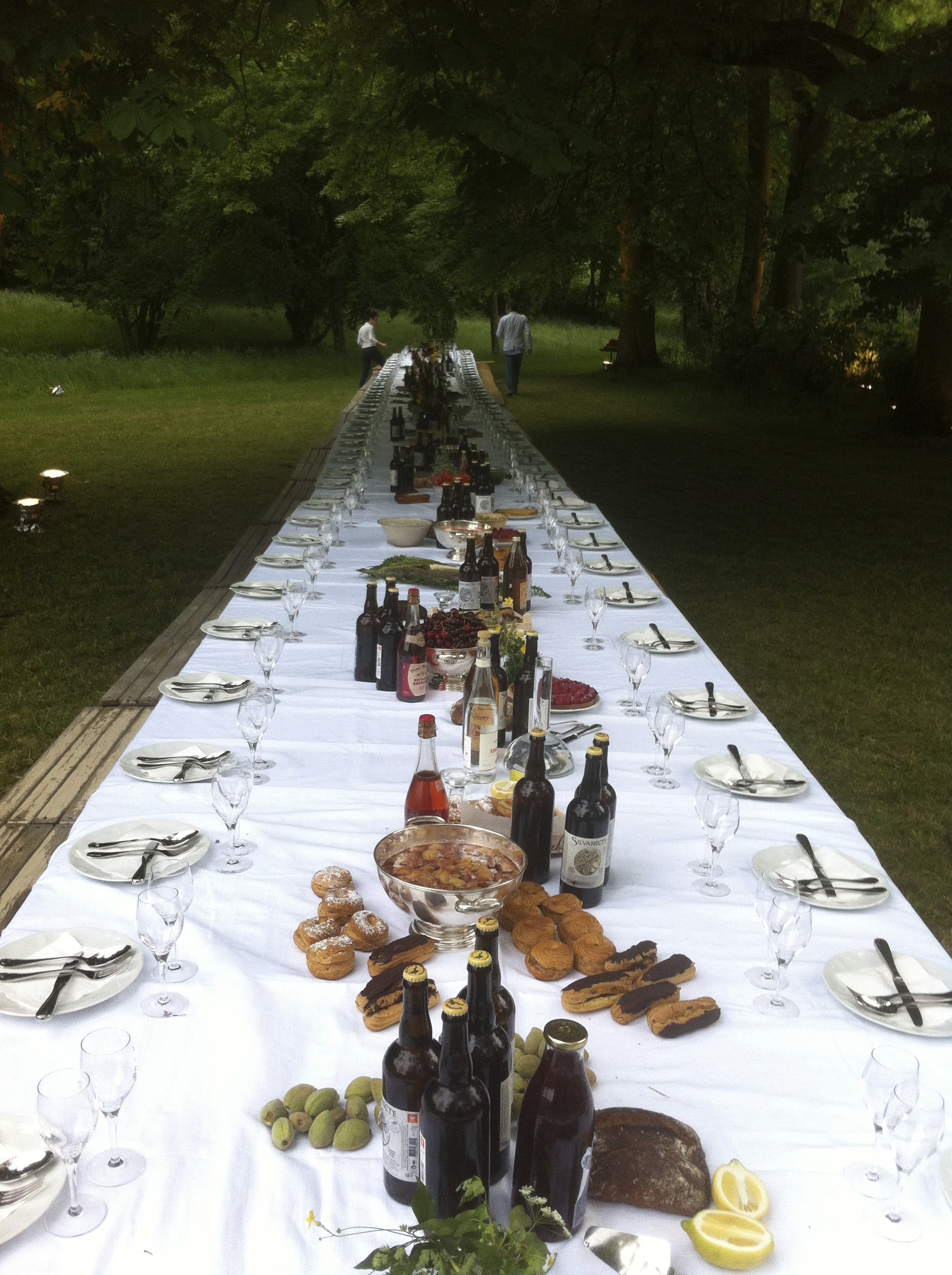 Banquet servi à la française en ambigu, pour cent convives, le 8 juin 2013, face à la prairie arcadienne,