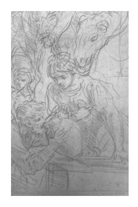 Éditions : carte 10×15, détail d’un dessin de Simone Cantarini (1612-1648), réhauts à l’encre rouge, numérotées et signées.