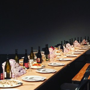 BANQUET[E]S XXXIX servis simultanément pour 60 convives au Centro de Arte de Criatividade de Torres Vedras au Portugal par Fabien Vallos et 60 convives aux Laboratoires d’Aubervilliers en France par Théophile Calot.