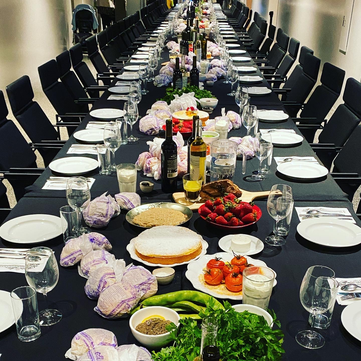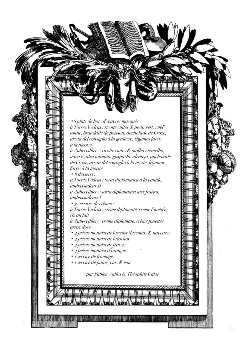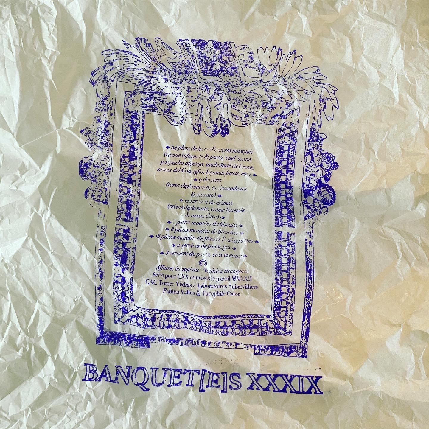 BANQUET[E]S XXXIX servis simultanément pour 60 convives au Centro de Arte de Criatividade de Torres Vedras au Portugal par Fabien Vallos et 60 convives aux Laboratoires d’Aubervilliers en France par Théophile Calot.