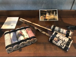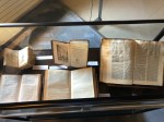 40 x 60 x 8,5 cm, cadre en bois, verre, tissu, cire bleue, livre (Un Philosophe provençal au temps des Antonins ; Favorin d’Arles. Sa vie, ses œuvres, ses contemporains, Ludovic Legré, ed. Aubertin & Rolle, 1900) et stylet romain en argent, ca. IIe s. ec.
