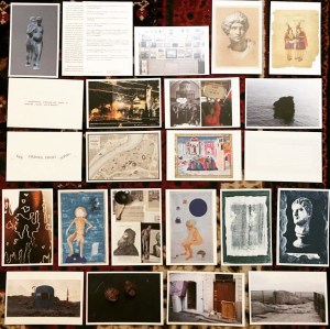 • un catalogue Favorinus philosophus, A3 imprimé et plié contenant l’ouvrage sur l’exil et 30 cartes postales réalisées par les artistes. Éditions Mix., 2019, 15 euros, 100 ex. numérotés.