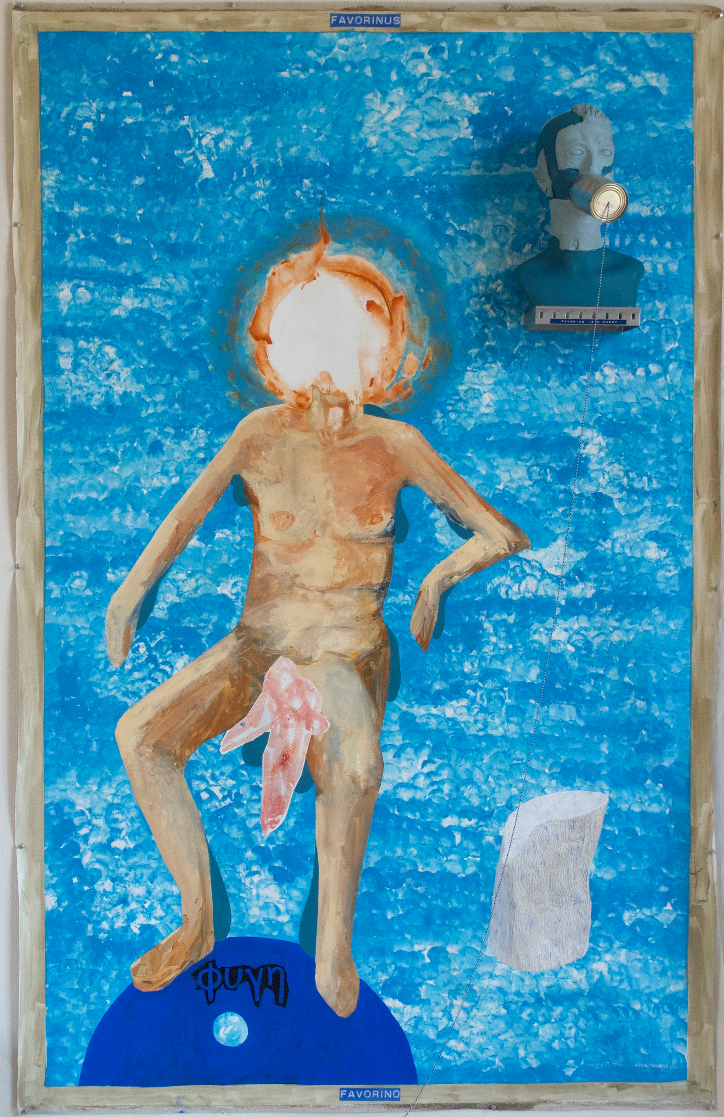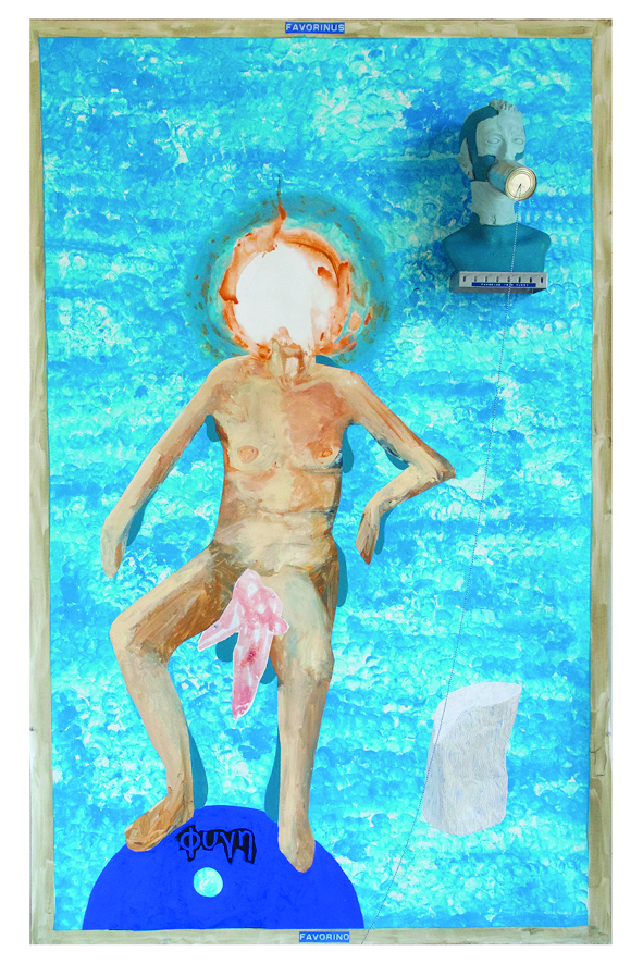 L’œuvre intitulée favorino / favorinus est une peinture augmentée de deux sculptures. Il s’agit d’un portrait du philosophe réalisé à partir du texte de l’Exil, de l’absence d’image, de la destruction de sa sculpture à Corinthe et des descriptions qui ont subsistées.