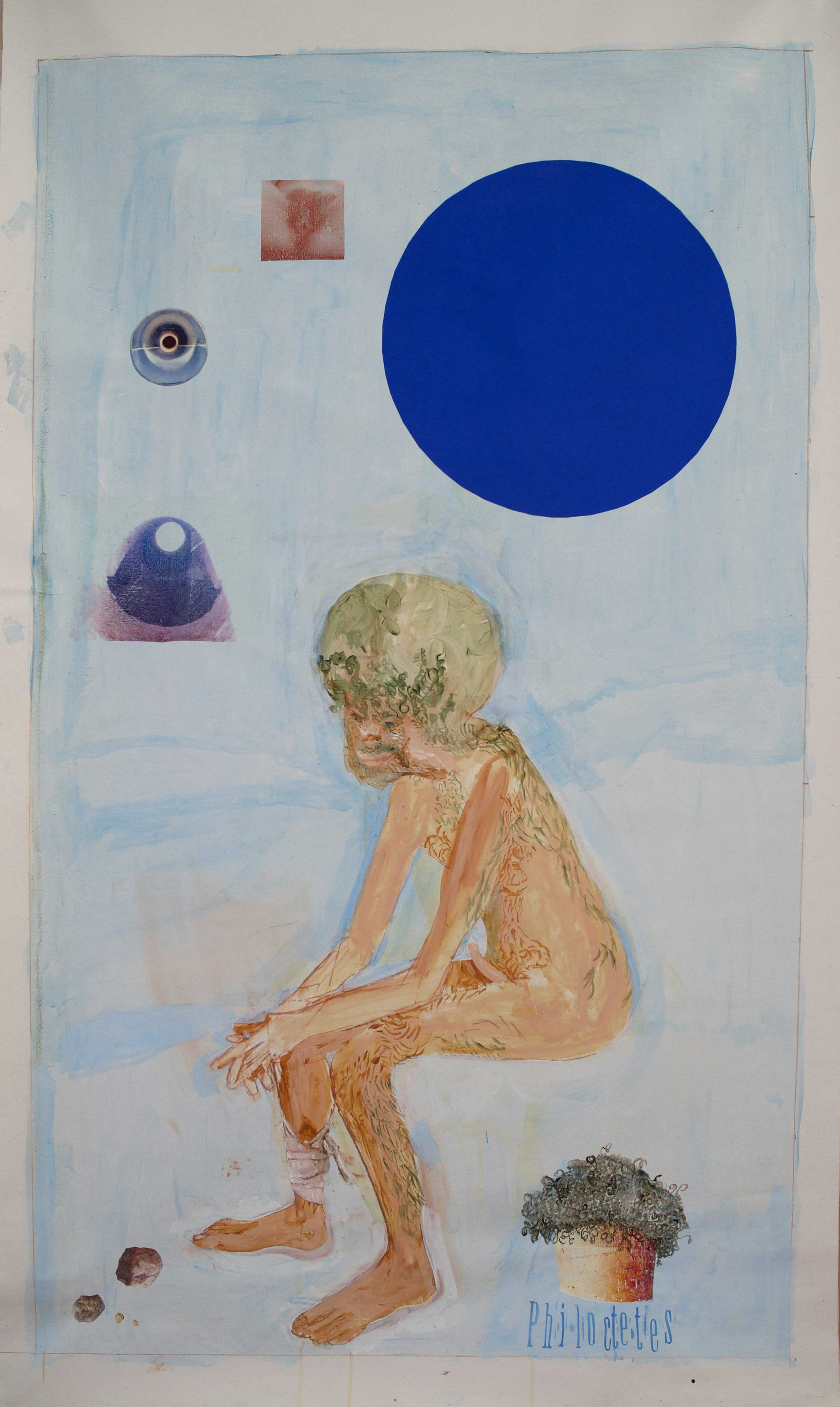 A Constructed Wolrd, philoctetes / philoctète [synthetic polymer paint, laser transfers on linen, 210 x 122 cm, 2012]